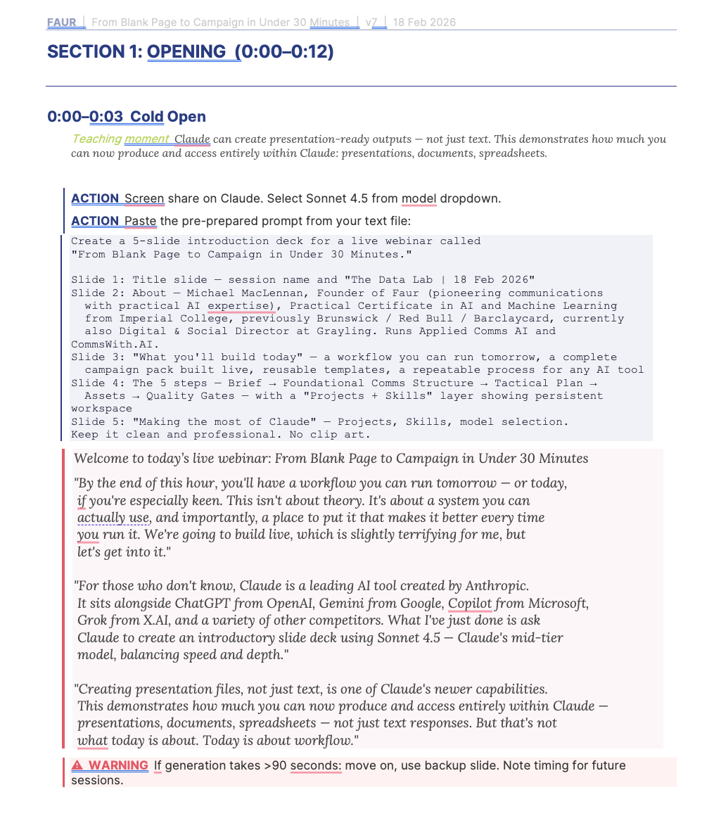 The webinar I delivered for The Data Lab yesterday – From Blank Page to Comms Campaign in Under 30 Minutes: A Live AI Build with Claude – was built using the same AI-assisted workflow I demonstrated live on the day.