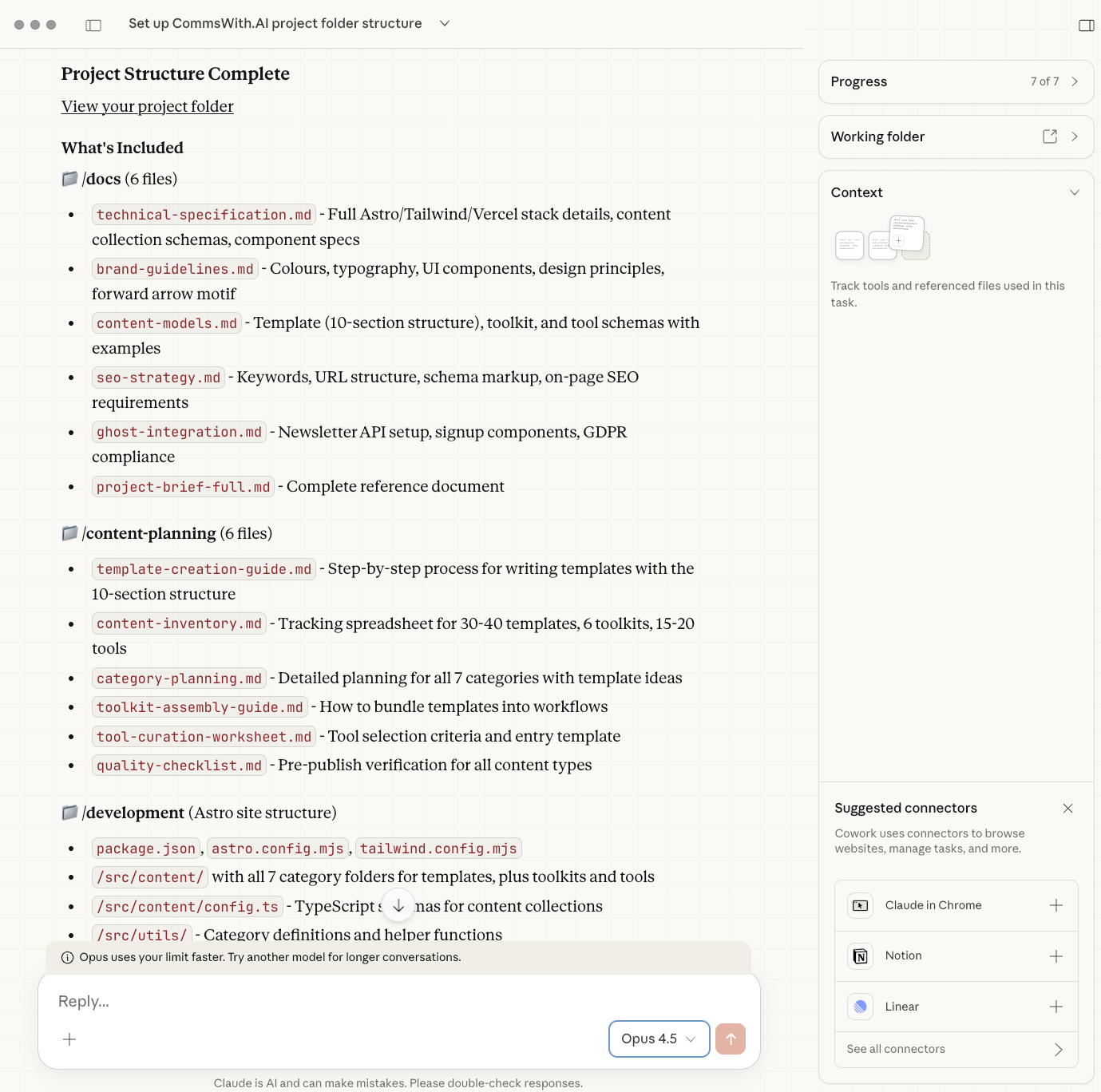 For me, it came less than 10 hours in, looking at a fully navigable, mobile-responsive, SEO-structured website that had not existed just a few days ago. Templates rendering correctly. Category pages linking through. A working newsletter signup. The skeleton of something both substantial and useful – produced, largely, through a conversation.