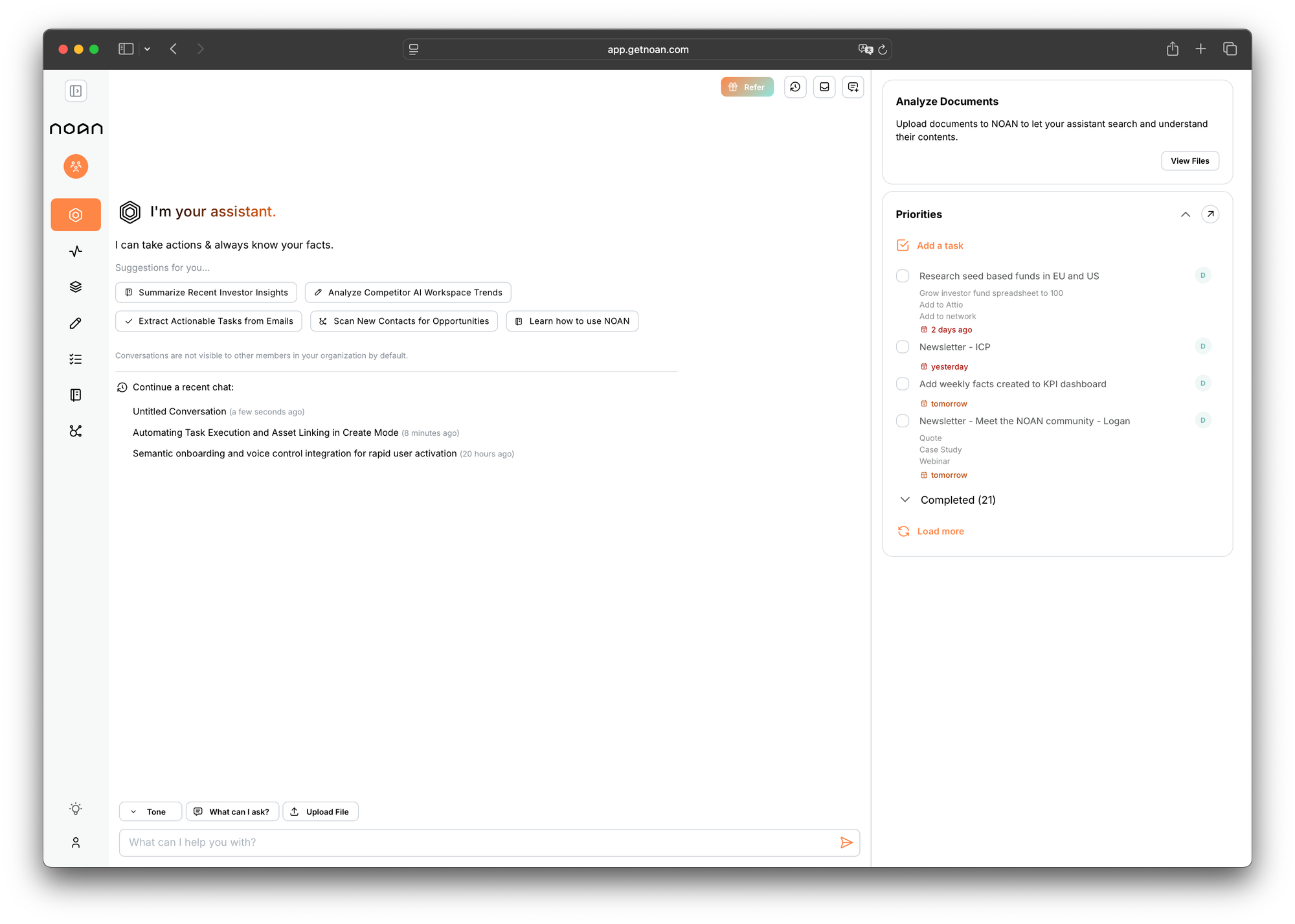 "About 90% of our users are using voice control. NOAN is built for natural language. You don't need to prompt it like you do with ChatGPT or Claude. You're just talking to it."